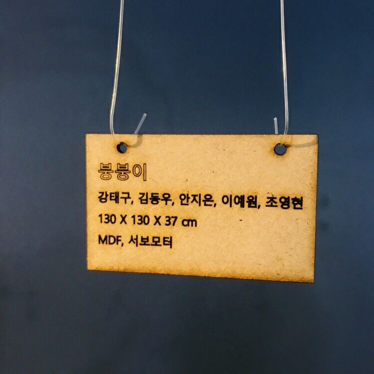 붕붕이는 앞단 몸체에 부착된 센서를 통해 사람 목소리를 인식합니다. 데시벨 기반으로 작동하는 센서에, 일정 소리 이상의 데시벨이 인식되면 다리를 움직입니다. 데시벨 대에 따라 사람이 가까이 있냐, 멀리 있냐를 판단하고 가까이 오면 많이 움직이고 멀리 떨어지면 적게 움직입니다. 각 몸체와 다리를 각각 다르게 디자인하고, 몸체에 달린 다리 또한 각도를 전부 다르게 설정하여 다이나믹하게 움직임을 연출하였습니다.